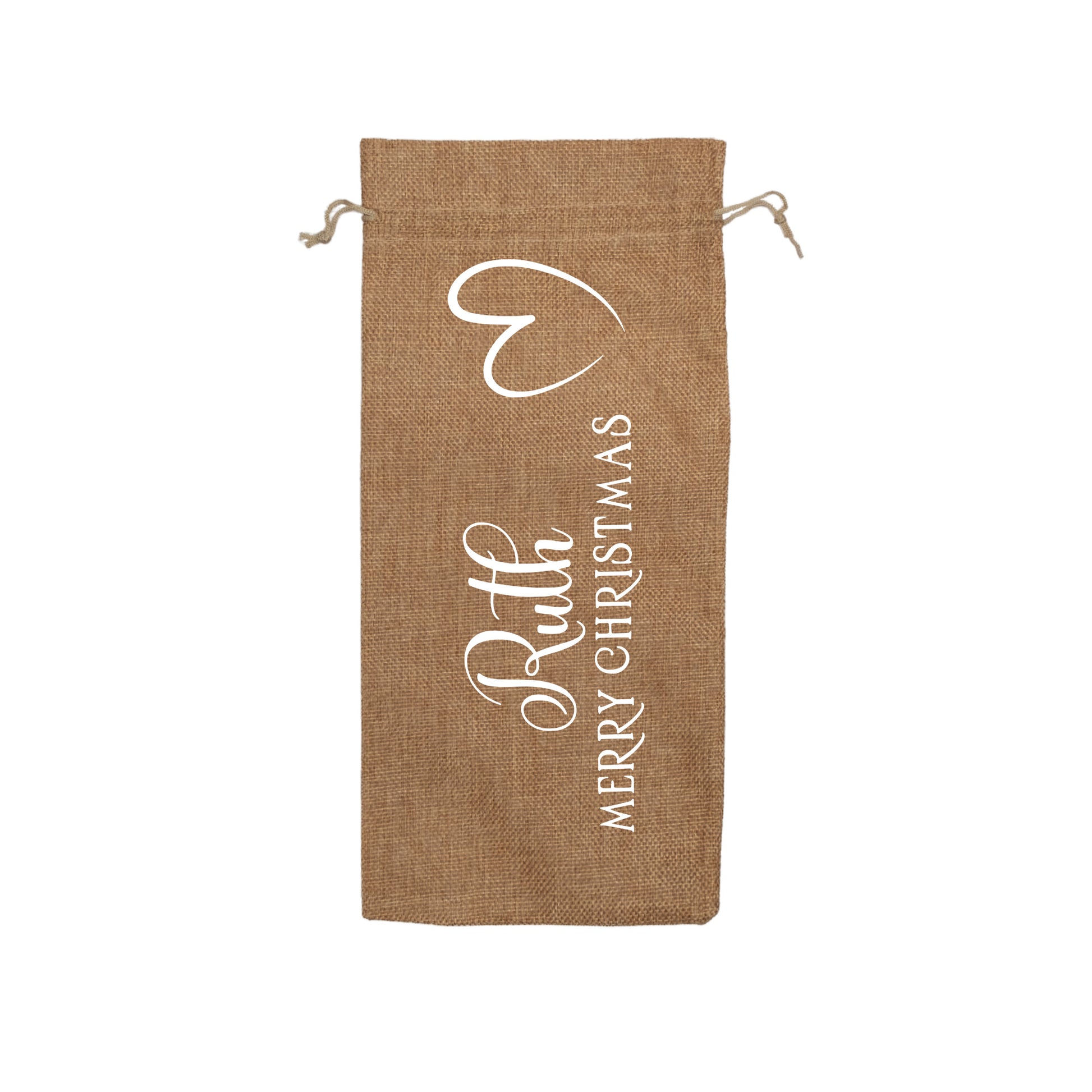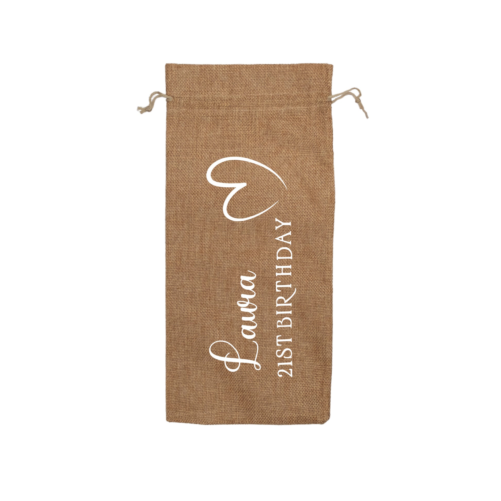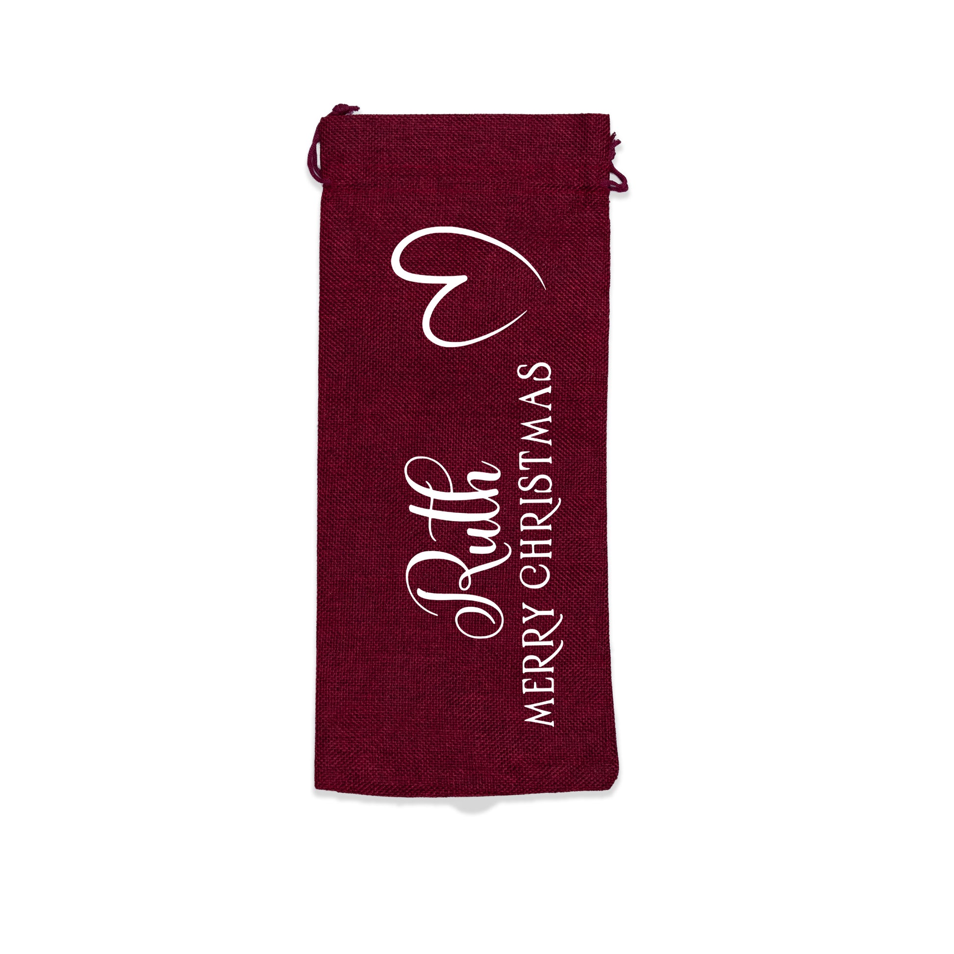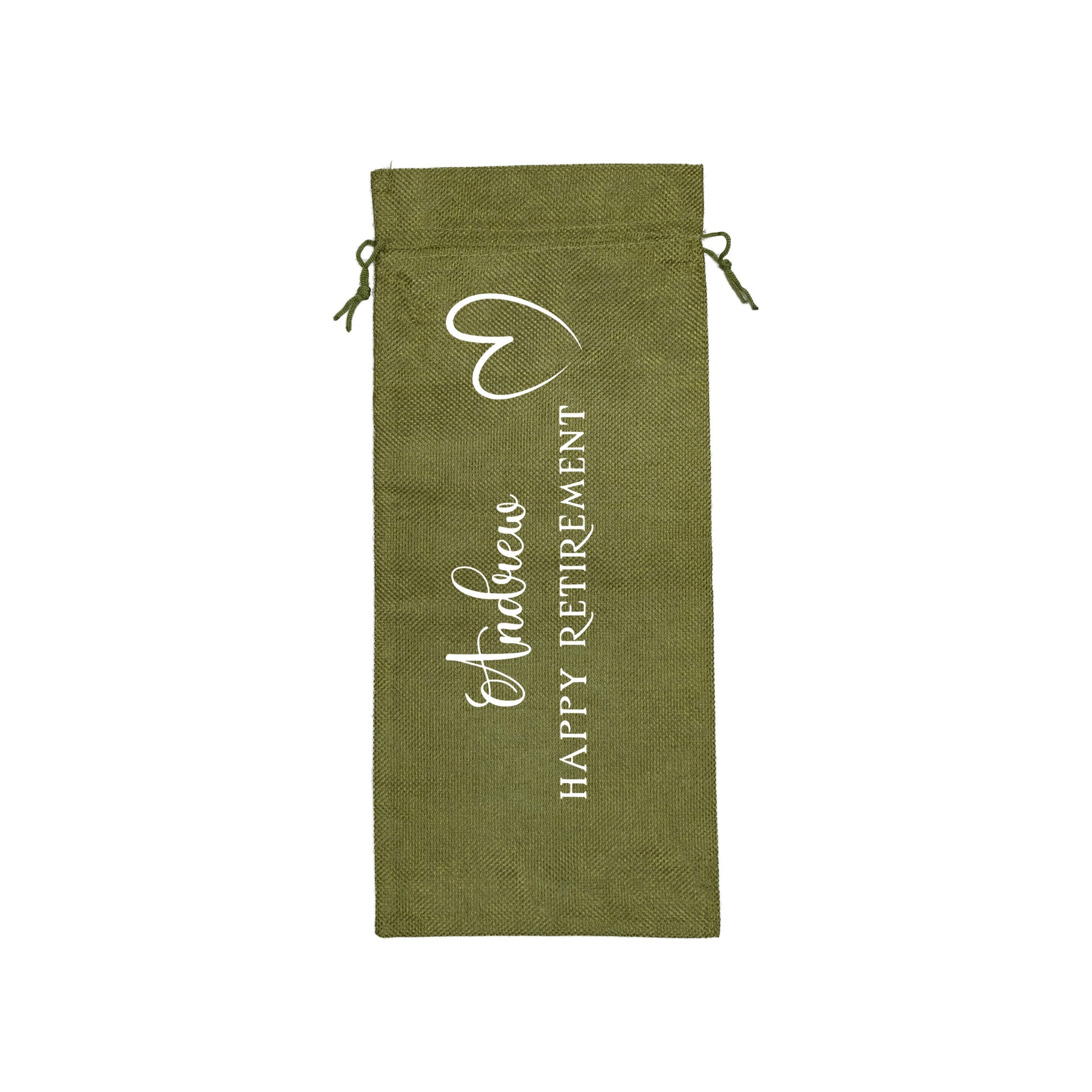 PERSONALISED BURLAP/HESSIAN STYLE WINE BOTTLE GIFT BAG in a variety of fashionable colours customised in our craft workshop to your specifications. All personalisations are included and there is free economy (2nd class) shipping on everything. Please note down all personalisation information into the comment field below. Also please note which product you are purchasing so we can tie your form up to the right order.
