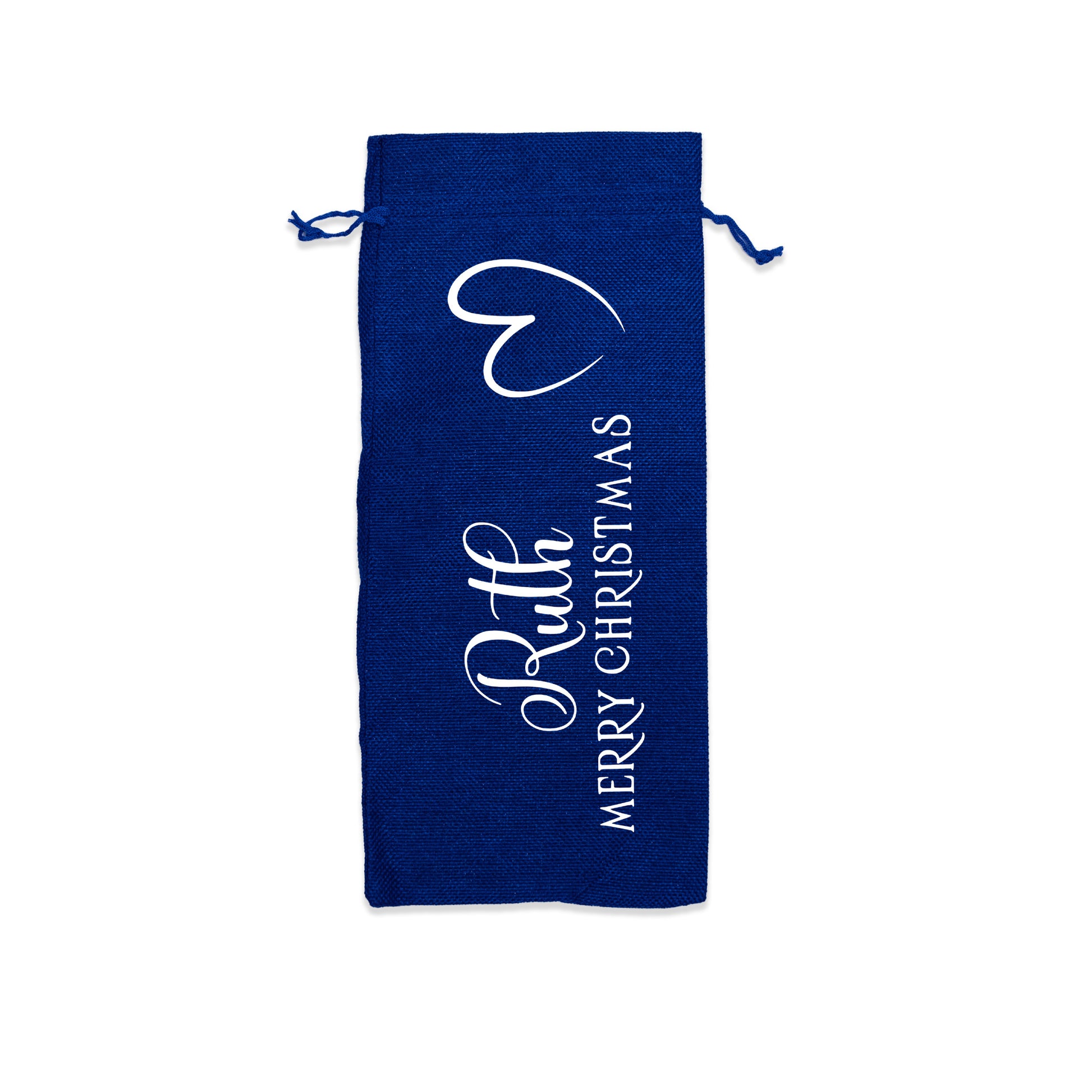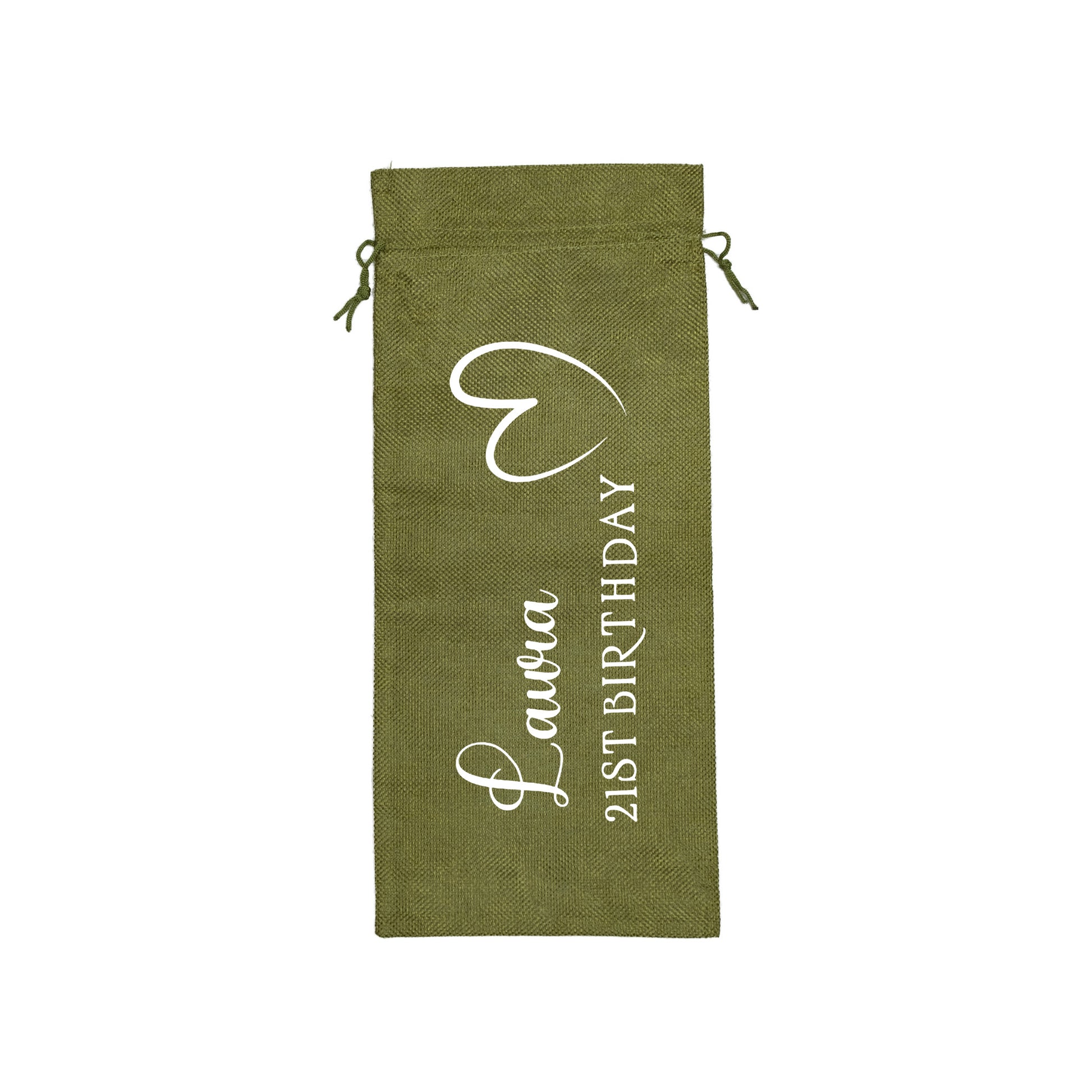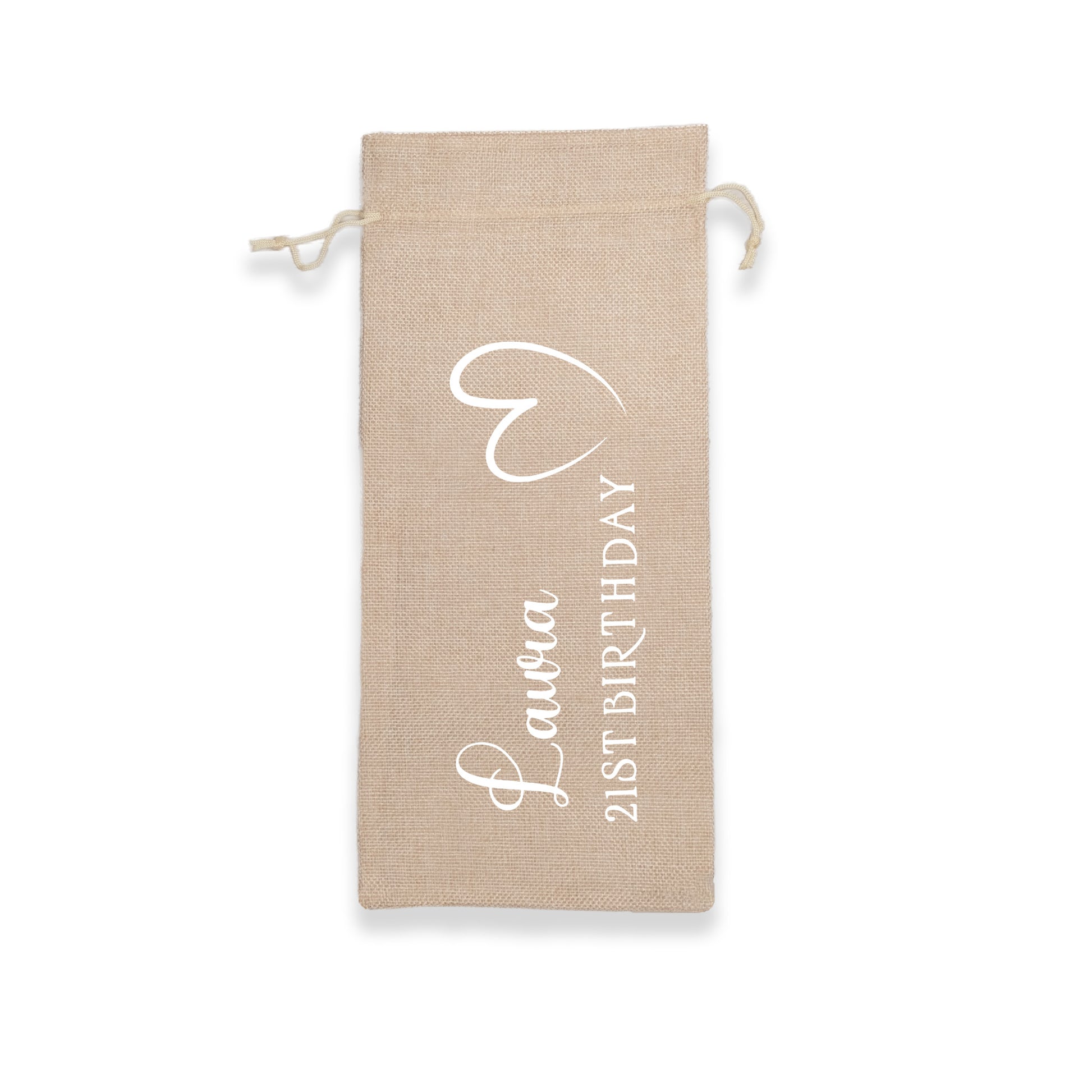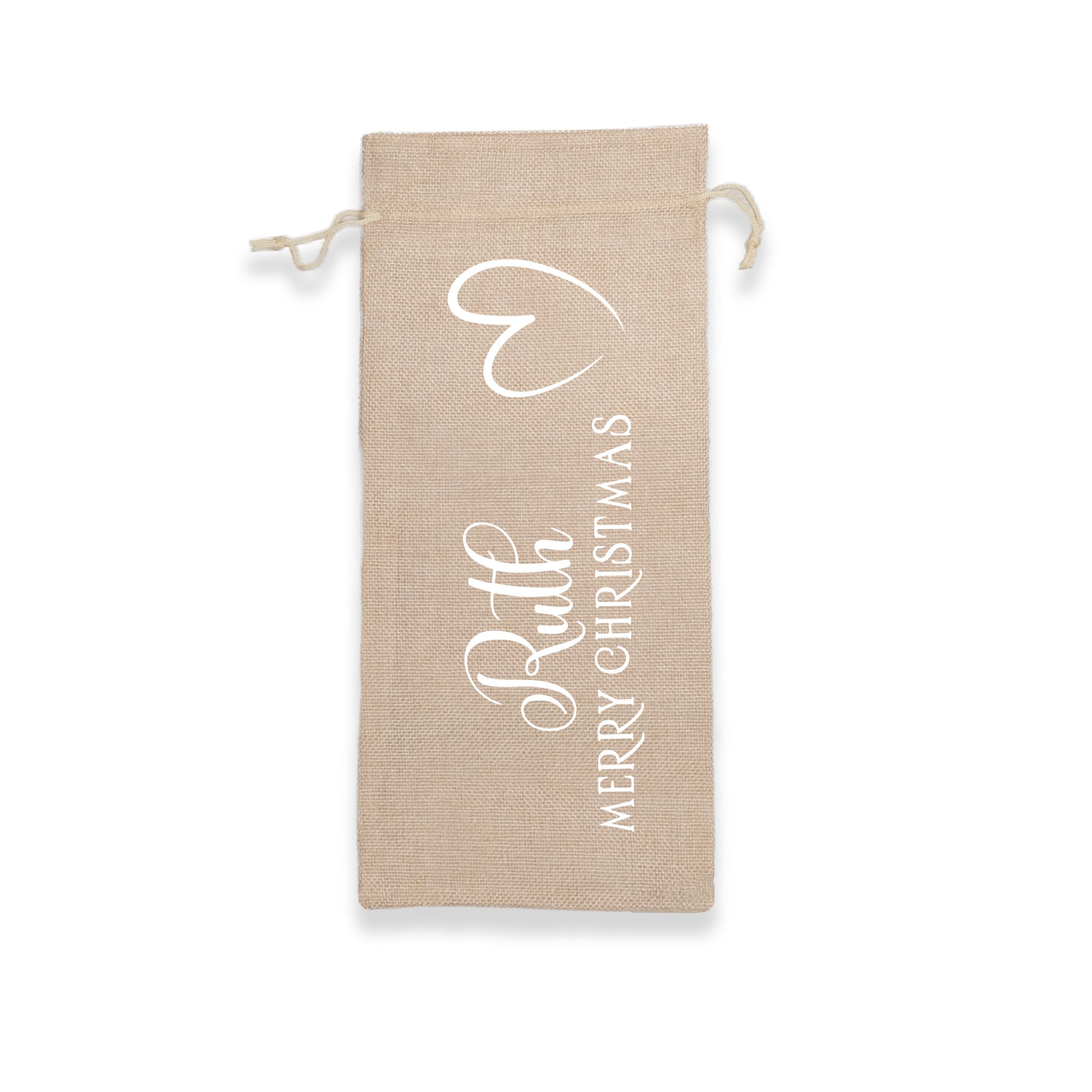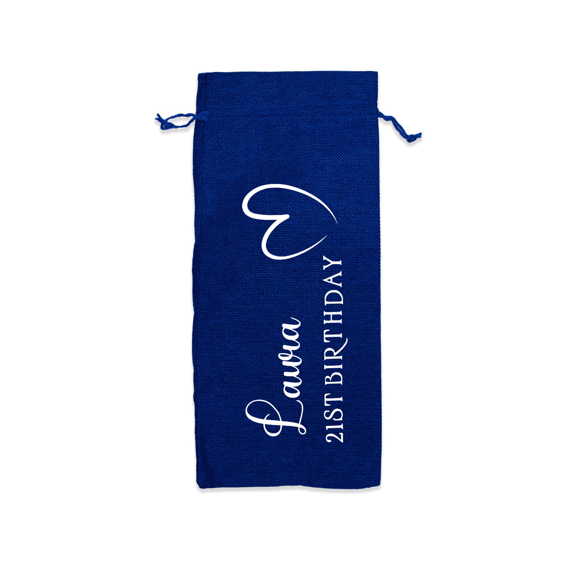 PERSONALISED BURLAP/HESSIAN STYLE WINE BOTTLE GIFT BAG in a variety of fashionable colours customised in our craft workshop to your specifications. All personalisations are included and there is free economy (2nd class) shipping on everything. Please note down all personalisation information into the comment field below. Also please note which product you are purchasing so we can tie your form up to the right order.