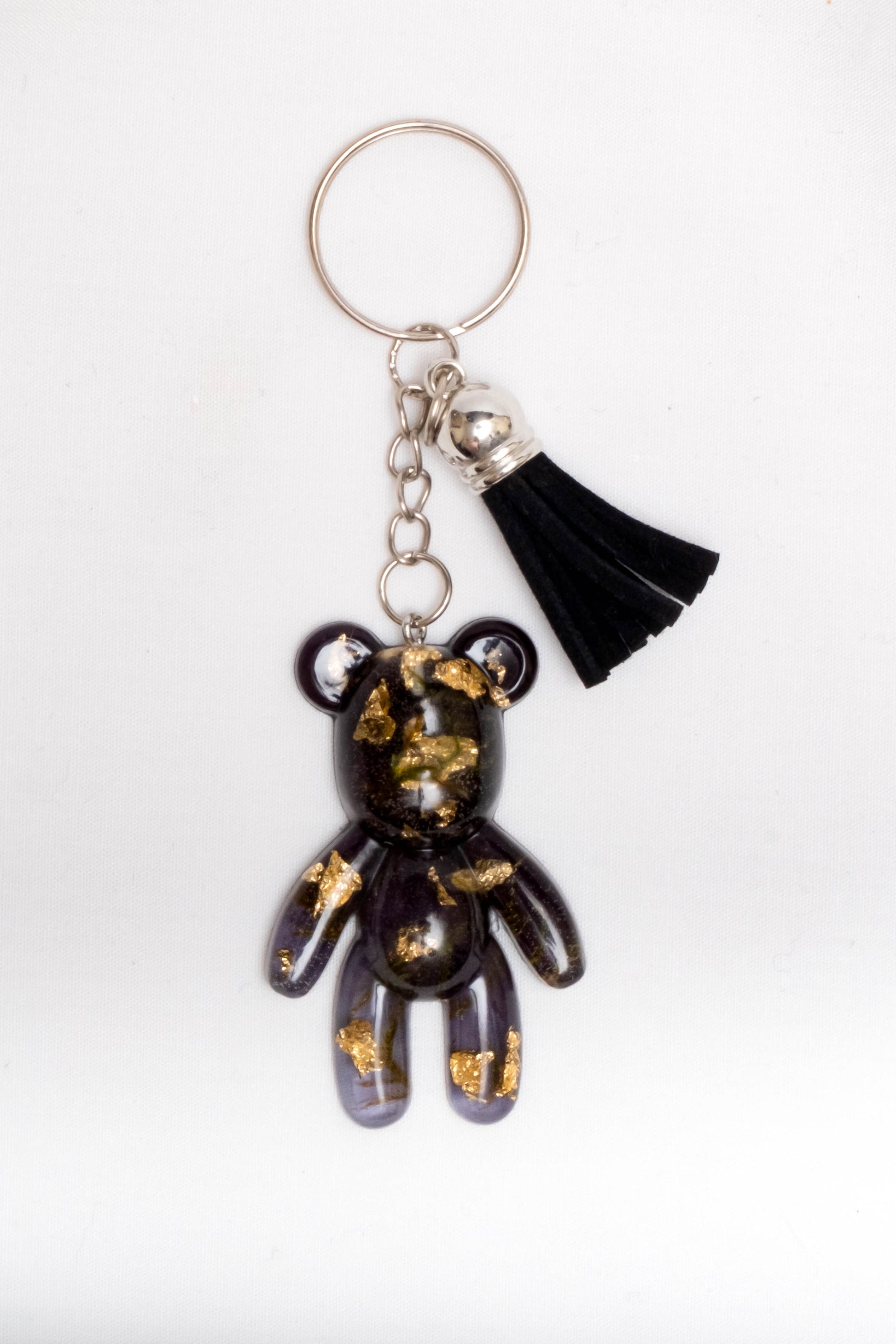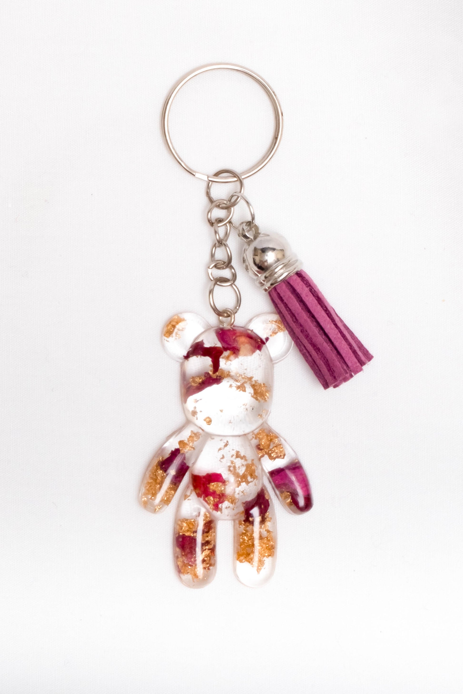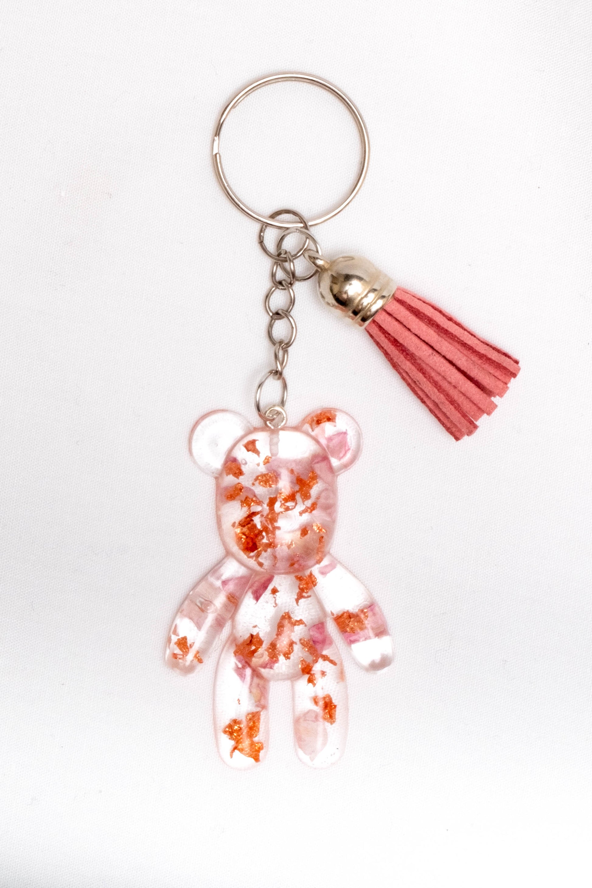 Beautiful fashion keyrings using resin technology to offer vibrant colours including a combination of natural flower petals and and foils in a wide range of colour ways to produce funky and exciting colour accent keyrings in the shape of a loveable teddy bear. Buy as a gift or for yourself. Give your keyring a unique statement element. All keyrings are presented on a presentation display card.