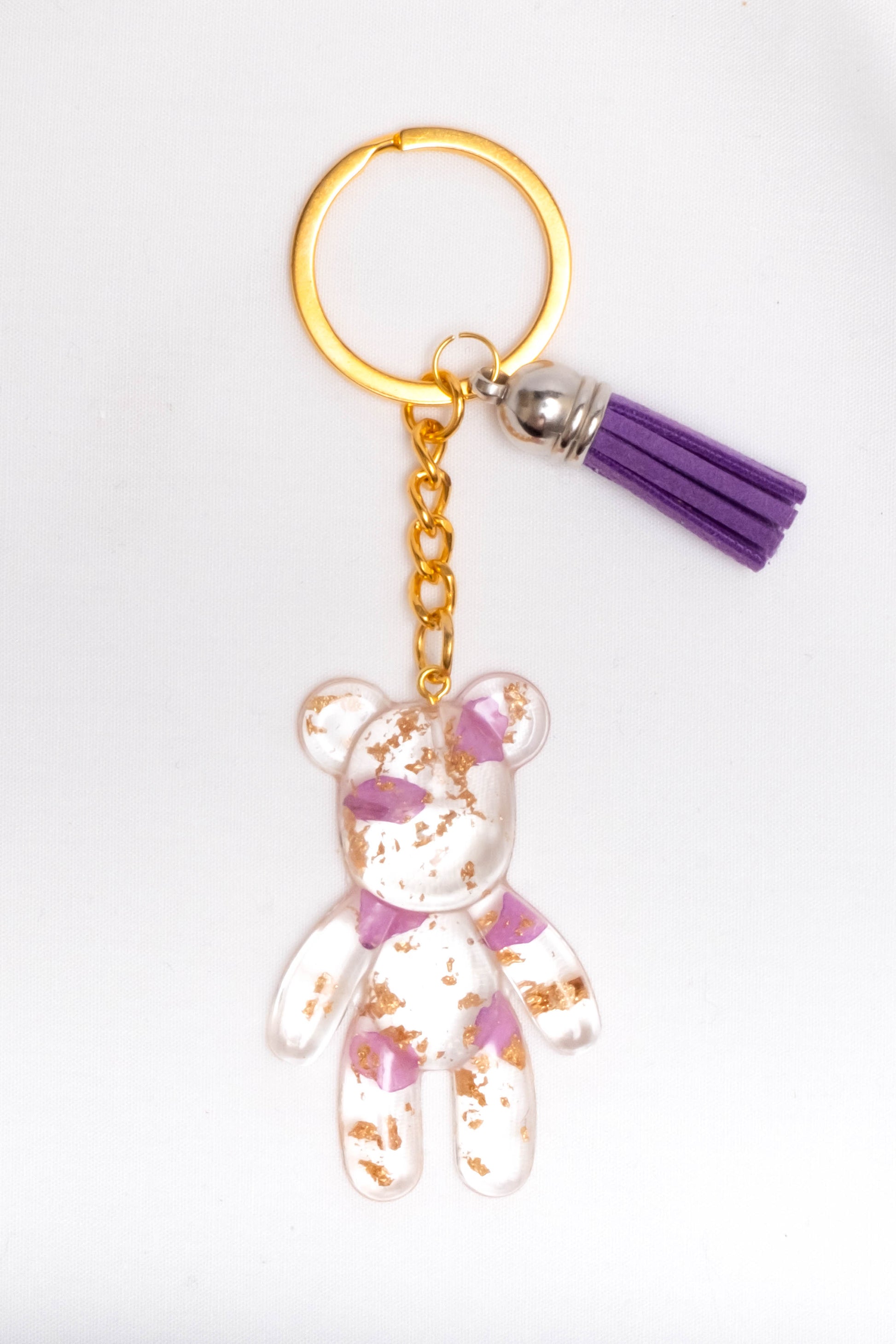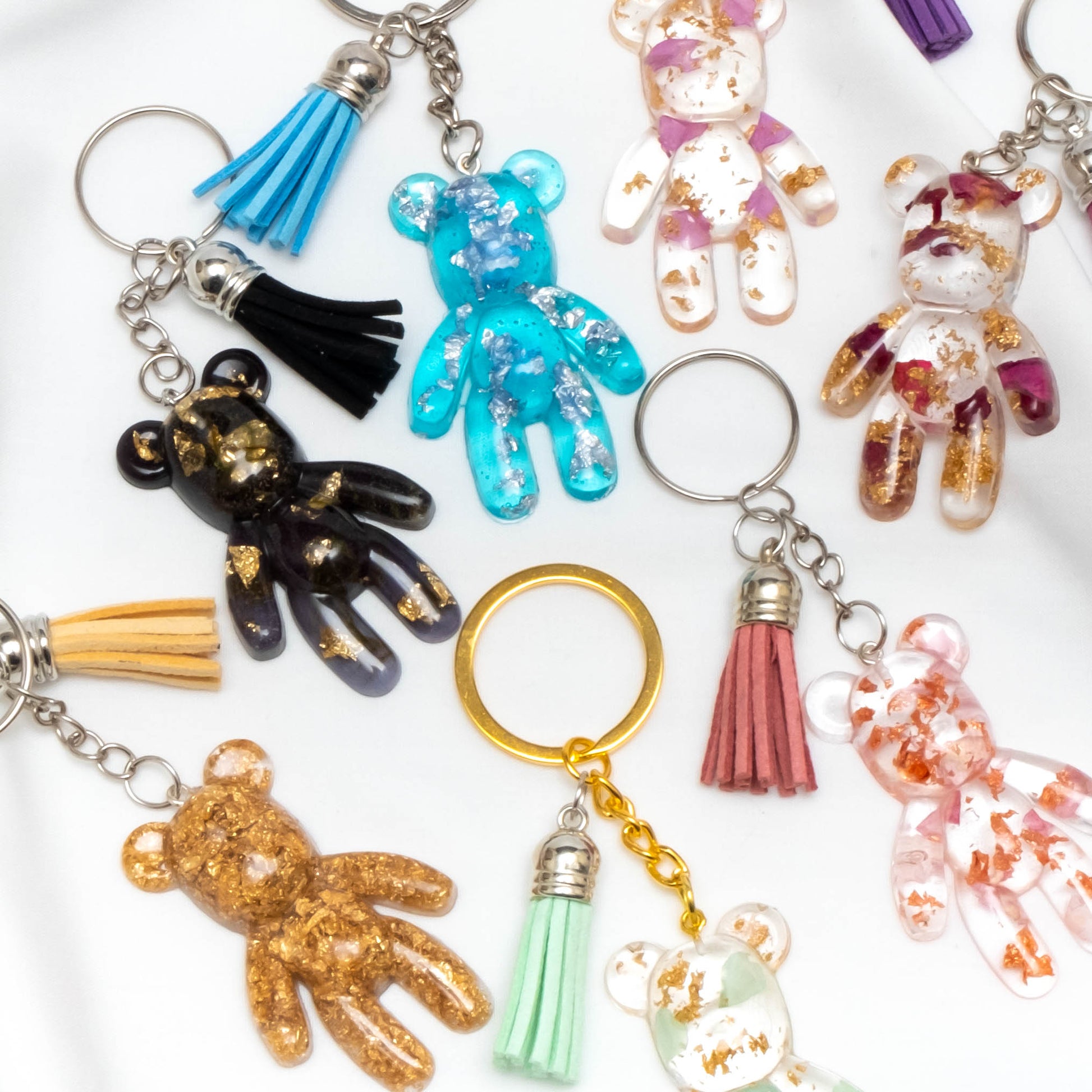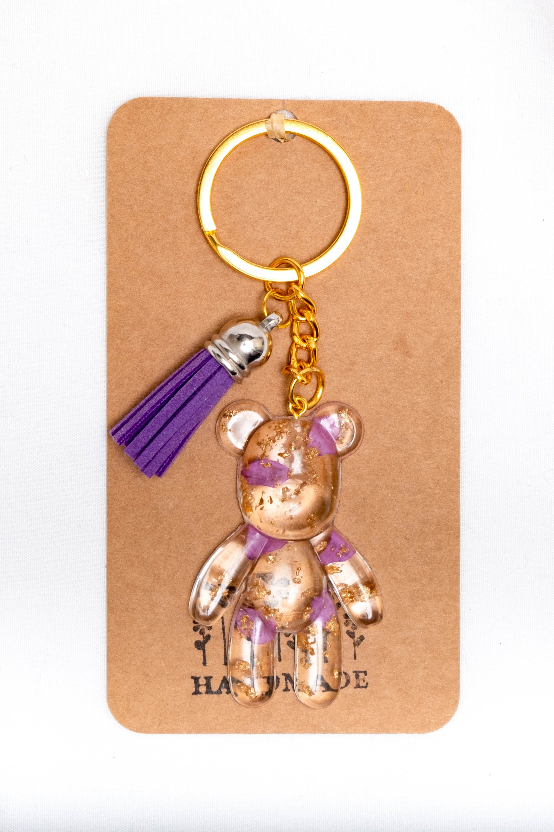 Beautiful fashion keyrings using resin technology to offer vibrant colours including a combination of natural flower petals and and foils in a wide range of colour ways to produce funky and exciting colour accent keyrings in the shape of a loveable teddy bear. Buy as a gift or for yourself. Give your keyring a unique statement element. All keyrings are presented on a presentation display card.
